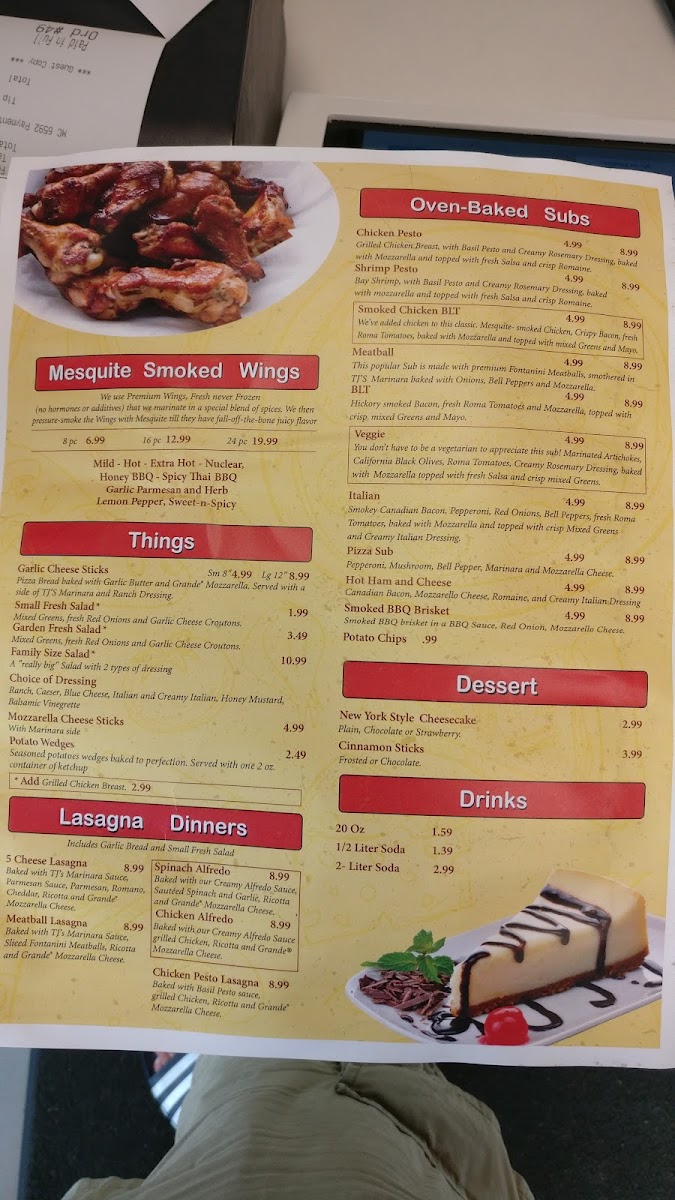 Desserts are not to be missed; the New York Style Cheesecake and Cinnamon Sticks provide the perfect sweet finish. Their late-night hours and student discounts, along with attentive service, make this spot a favorite for locals. Customers rave about their delicious dishes and personal touches, making TJ’s a top destination for pizza lovers. With rave reviews highlighting amazing hospitality and killer pizzas, indulge your cravings at TJ's for an unforgettable dining experience!